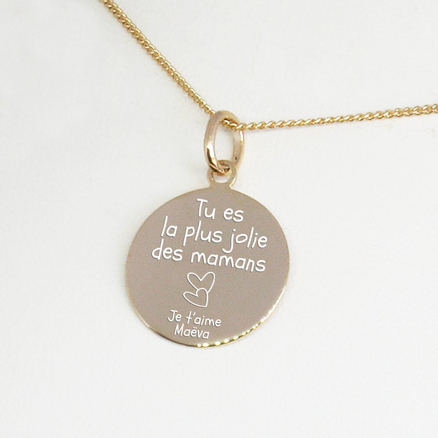 Gravure prénom sur pendentif. Laissez-vous séduire par ce joli médaillon en plaqué or.